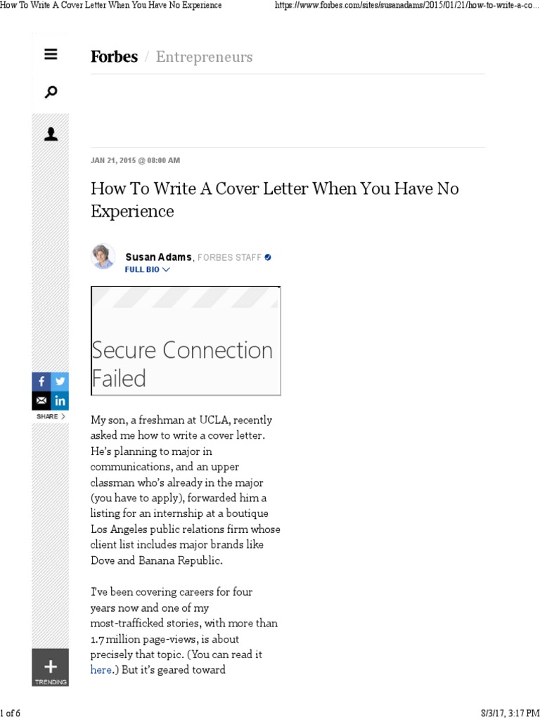 These examples show that you can blend your experience and accomplishments with your enthusiasm for the position you're applying for. Arthur flores hiring manager st. By putting your best foot forward, you can increase your chances of being interviewed. A compelling cover letter should always accompany your resume. Since your biggest tool when applying for jobs is previous relevant experience, you might think you're out of luck if you don't have experience. Dear bill, attached you'll find my resume for the position of summer intern. Make your cover letter with no experience less than a full page. Resume builder use our builder to create a resume in 5 minutes. Short cover letter sample (internship) last up is monica. To put your mind at ease, let me show you how you write a cover letter for fresh graduates with no experience plus a free sample that you can use. When you're trying to put together a cover letter with no experience, it can be a real challenge to convince hr managers that you have what it takes to handle his company's job. We short cover letter examples with no experience don't short cover letter examples with no experience provide any sort of writing services. Set margins at 1 inch.